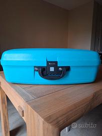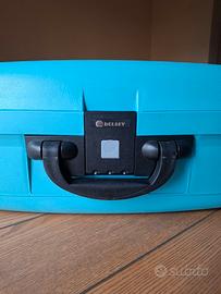 Vendo valigia rigida Delsey di colore azzurro, in buone condizioni.