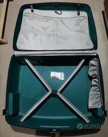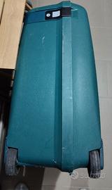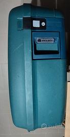 Valigia Delsey rigida e RESISTENTE, con maniglione superiore e maniglia laterale per un comodo trasporto su ruote tipo trolley. Apertura frontale con codice personalizzabile, aperture e chiusure laterali con chiave in dotazione, presenti istruzioni originali. All'interno un comodissimo separatore con 3 tasche per documenti,giornali o qualsivoglia che separa la zona inferiore da quella superiore. Molto capiente, indicata per viaggi familiari o con grandi quantità di roba, inoltre molto flessibile e resistente per viaggi in aereo. Misure indicative esterne: Altezza 60 cm. X Larghezza 76 cm. X Profondità 26 cm. Misure indicative interne: Altezza 54 cm. X Larghezza 73 cm. X Profondità 24 cm. Peso indicativo 5-6kg 102 Litri circa di spazio disponibile Prezzo interessante: 40 euro.