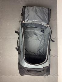 Borsone trolley Eagle Creek Cargo Hauler Wheeled 110L, colore grigio, in ottimo stato. Versatile e resistente, ideale per viaggi, campeggio e trasporto attrezzatura sportiva. Capacita' 110 litri con apertura a U per accesso rapido al vano principale Ruote oversize tassellate per scorrere agevolmente su ogni superficie Bretelle zaino ripiegabili nel vano frontale per modalita' di trasporto alternativa Tessuto in nylon balistico idrorepellente ad alta resistenza all'abrasione Cinghie di compressione e punti di aggancio per portapacchi o sella Maniglie laterali e superiore rinforzate Prezzo: 120 euro non trattabile. Spedizione disponibile a carico dell'acquirente o ritiro a mano.