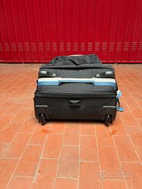 121 L - 33 x 79 x 40 cm. Capiente valigia da viaggio mai usata. Ampio trolley da viaggio a 2 ruote con due scomparti principali e chiusura TSA.