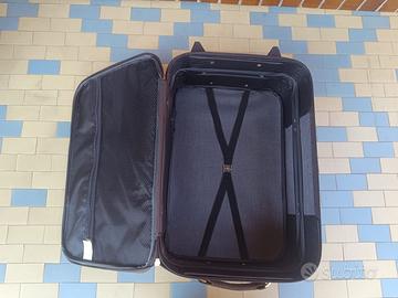 Valigia 55 x 35 x 20 in tessuto marrone con rotelle e manico estraibile. Marca Ettore Bugatti, in ottime condizioni.