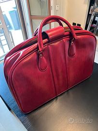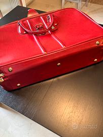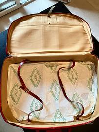 Vendo valigia in cuoio rosso, con interni in tela color crema.
