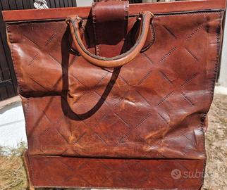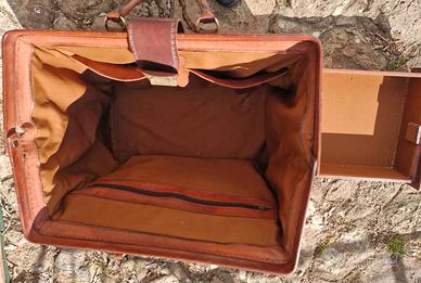 Ampia valigia in vera pelle cucita a mano, cassetto porta oggetti, tasca interna e chiusure di sicurezza; molto bella e pratica. Vendo per unitilizzo.
