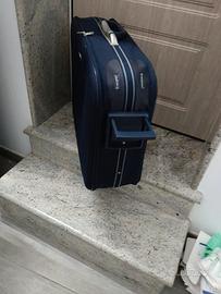 Valigia con rotelle e manico di trasporto... misure: L 70 cm, H 60 cm, P 20 cm.