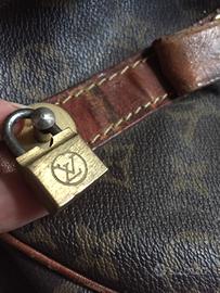 Con segni di usura alla tracolla e cerniera da aggiustare.