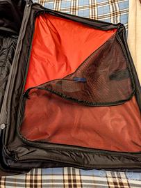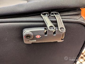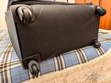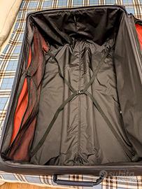 Trolley spazioso e funzionale, con quattro ruote multidirezionali. ALTEZZA 90 CM, LARGHEZZA 55, PROFONDITA' 33 . Manico superiore e laterale, sistema di traino con asta bitubo telescopica. Chiusura con cerniera e lucchetto con combinazione a tre cifre e funzione TSA. Interno provvisto di cinghie ferma abiti.