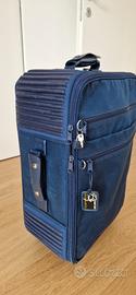 valigia mandarina duck tank 34x22x58 in tela, con profili tank colore blu notte 2 ruote e maniglia estendibile.