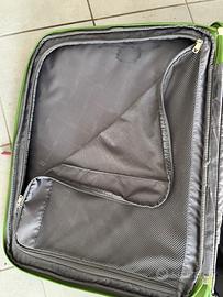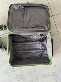 Vendo valigia morbida Roncato originale, taglia media. Colore vivace, facilissima da individuare sul nastro dell'aeroporto. Molto capiente grazie alla struttura flessibile. Dimensioni: circa 66 x 44 x 25 cm (Taglia M). Ruote: 2 ruote grandi e robuste (perfette per marciapiedi e ciottoli). Interni: Ben organizzati con elastici ferma-abiti e tasca a rete nel divisorio (fodera logata Roncato). Plus: Tasca esterna frontale molto comoda per documenti o oggetti da tenere a portata di mano. Stato: Usata in buone condizioni generali. Segni di usura esterni minimi, interni pulitissimi e meccanica (ruote e maniglia) perfetta.