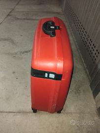 valigia rigida molto capiente,all esterno segni di usura x sfregamento ma si chiude perfettamente,all interno come nuova.