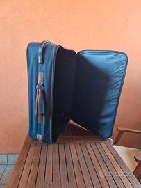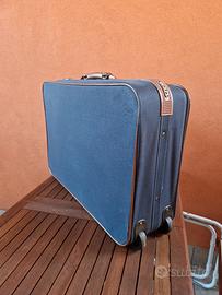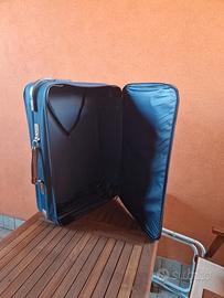 vendesi valigia morbida, in tessuto color blu con n.2 ruote, in ottimo stato, con una tasca davanti e un vano molto capiente per riporre vestiti e scarpe.