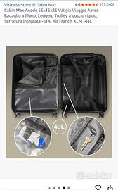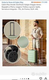 Marca CABINAMAX misure 55X35X25 Colore NERO usato poco (3 volte) per altre info e foto contattatemi tramite messaggio.
