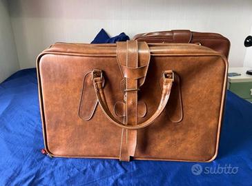 Valigie vintage anni 70 in vera pelle, perfetta anche per arredamento”.
