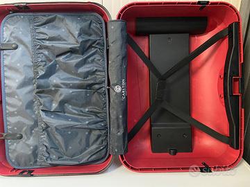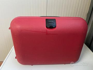 Valigia rigida CarltonU.K., per stiva aereo. Colore amaranto, manifattura inglese,doppia chiusura, codice, manico allungabile, ruote,maniglie. Interni puliti con cerniere. Perfetta condizione, senza danni,qualche graffietto. Misura75x60x30