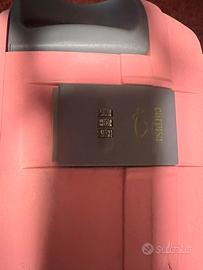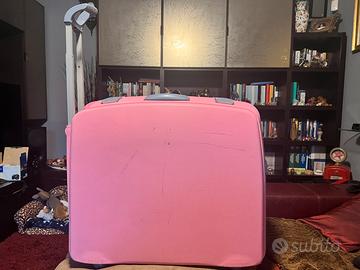 Valigia da stiva rigida Carpisa , maniglia , braccio estensibile e ruote tipo trolley , combinazione funzionante . Un po’ di righe esternamente inevitabili nelle stive . Interno perfetto . Lunghezza 63 cm , larghezza 51 cm , profondità 24 cm . Le misure sono approssimative a più o meno un cm , avendo gli angolo tondi . Pulita e disinfettata , consegna o ritiro su Roma nord.