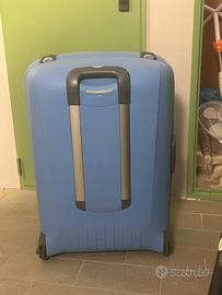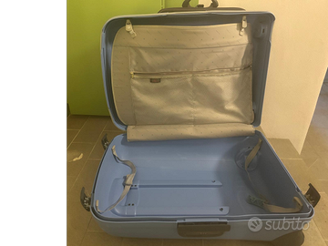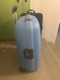 Valigia rigida grande Roncato usata. Colore azzurro chiaro. Chiusura con combinazione integrata sul lato. Dimensioni 58x78x34 - 115 lt Presenta qualche segno dovuta all'utilizzo. --> Guarda anche gli altri articoli che ho in vendita <-- Per maggiori informazioni scrivetemi qui o su Whatsapp al numero 3773102676