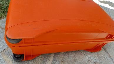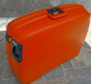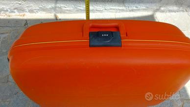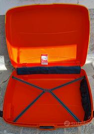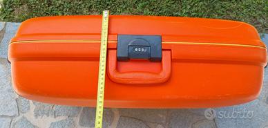 Valigia/trolley guscio rigido RONCATO, colore arancione, doppia impugnatura con maniglia laterale, chiusura con combinazione, tasca interna asportabile e lavabile, elastici ancora molto robusti.