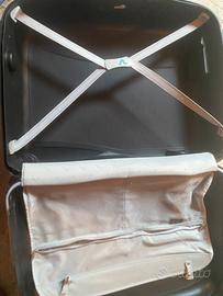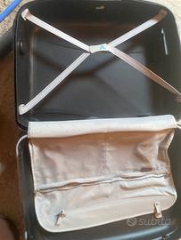 Vendo valigia rigida Roncato, sinonimo di qualità e resistenza, ideale per viaggi aerei o weekend. Caratteristiche: * Guscio rigido resistente (colore nero) * Lucchetto integrato con combinazione * Interno organizzato con divisorio e cinghie elastiche * Maniglia solida * Struttura robusta e durevole Condizioni: Usata ma in buone condizioni, con normali segni d’uso esterni. Interno pulito e ben conservato.
