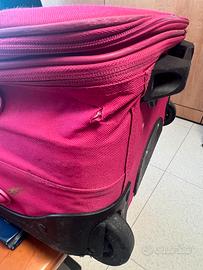 Ruote e meccanismo della maniglia perfettamente funzionanti. La valigia presenta uno piccolo strappo laterale come da foto che non ne poregiudica l’utilizzo. Ritiro a mano in zona Torrino Mezzocammino