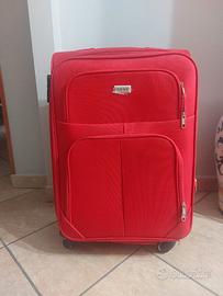 Valigia in tessuto, molto capiente con cerniera per aumentare spazio, media, con 4 rotelle laterali per maggiore stabilità e facile da trasportare.