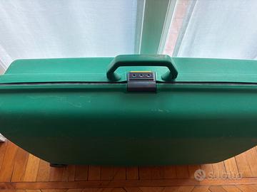 Valigia Samsonite Oyster rigida con 2 ruote con sistema di traino. Con combinazione Colore: verde Misura: 69 cm larg. x 22 cm prof. x 53 cm alt. 68,5 litri Aggiungo Trolley morbido nero di dimensioni medio/grandi. Ritiro a mano in zona Como Prezzo già basso, non trattabile