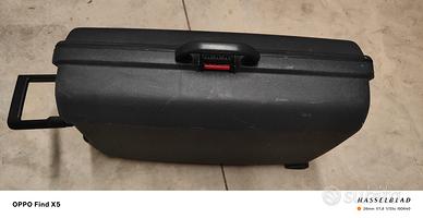 Valigia media, dal guscio rigido, trolley due ruote con sistema di traino.
