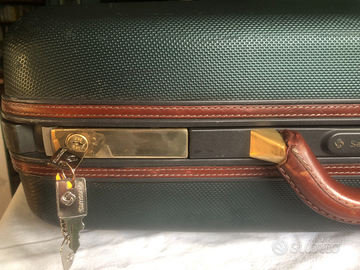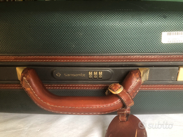 Valigia Sansonite vintage anni '80 , colore verde bottiglia, misure 55x45x20 cm, chiusura con chiavi originali e con combinazione numerica, con 4 ruote .