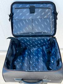 Troller salvaspazio per aereo 42x23 h 40 , in pelle con chiusura a combinazione e targhetta estraibile per nominativo. Interno ampio con scomparti separati ( interni ed esterni) per riporre tutto il necessario. La marca Coveri è garanzia di qualità.nessuna problematica o difetto