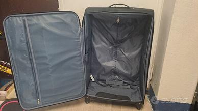 Trolley semirigido Carpisa mai usato. Leggero e facile da trasportare. Colore blu scuro. Dimensioni con ruote e carrello(cm):46 x 78 x 27