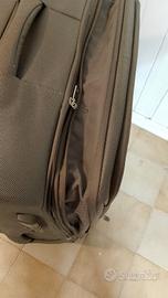 Valigia Trolley di grandi dimensioni Delsey verde cachi metallizzato con tante tasche. Pulita!!!