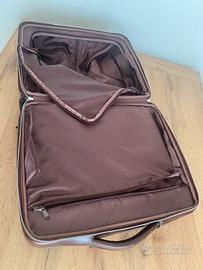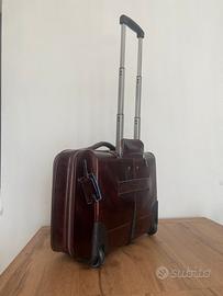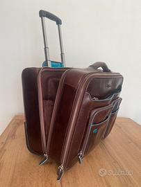 Valigia trolley in pelle marrone Piquadro larga 43 x h 40 x profondità 20/28 cm (ingombro minimo in profondità 20 cm.