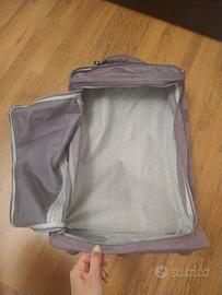 misure 52 cm di altezza 35 cm larghezza e 10 cm profondità. ha due scomparti con zip (uno esterno e uno più interno)