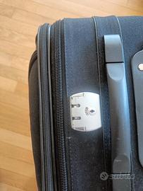valigia trolley nera in similpelle con doppia cerniera per aumentare lo spazio