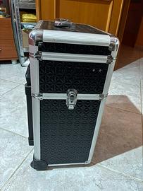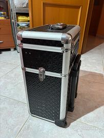 Vendo a malincuore questa solida e capiente valigia/trolley professionale, ideale per estetiste, truccatori, parrucchieri, o qualsiasi professionista che necessiti di trasportare e organizzare in modo sicuro i propri strumenti di lavoro. È stata utilizzata per attività nail artist ed è in ottime condizioni strutturali. Può essere utilizzata per il trasporto sia interamente, che solo la parte superiore.