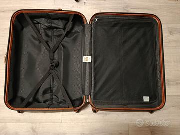 Vendo valigia trolley rigido usato della Bric's linea Dynamic Light , la chiusura a combinazione è del tipo TSA omologata per l'ingresso negli USA, le 4 ruote sono state sostituite con altre nuove dotate di cuscinetti a sfera.