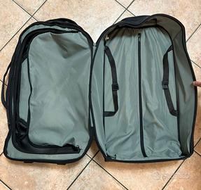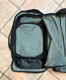 - Ampio scomparto principale con cinghie interne ferma-abiti e tasca con chiusura a zip;