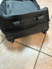 Pratico borsone-valigia semirigido marca HALFAR con rotelle e manico estraibile, ideale per viaggi e spostamenti.