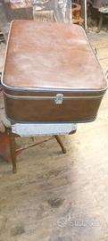 Valigia rigida d’epoca in similpelle marrone con chiusure in metallo e manico originale. Ottima per scenografie, arredo vintage, esposizione o collezionismo. In buone condizioni H 20 L 76 L 48CM