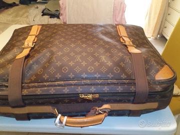 bellissima valigia vintage anni 70 in vera pelle pelle cuoio e stampato misure in CM 70/50/18