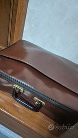 Vintage splendida valigia in un elegante design Mid-Century Modern, un originale degli anni '60 o '70. La valigia è realizzata in similpelle. Le sue dimensioni perfette la rendono ideale per ogni occasione, ed è perfetta anche come borsa da weekend o per riporre piccoli oggetti in casa. Il design è splendido e ha una patina unica. È in ottime condizioni, come se fosse un'auto usata. Dimensioni come in foto.