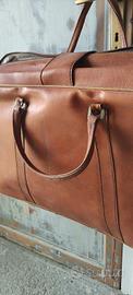 Grande valigia in pelle, vintage. Nonostante l'età non riporta danni sostanziali, a parte qualche graffio dato dall'uso. Interno praticamente nuovo. 70x40x15 cm.