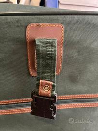 Valigia vintage Hocean anni 80 in tessuto verde e inserti in pelle - Italian suitcase Misure: P 12cm L 80 cm H 60 cm