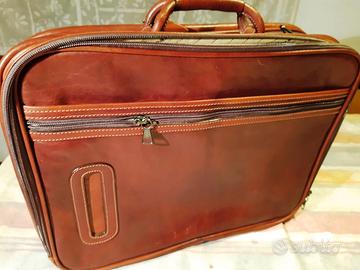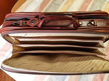 Borsa con scomparti ufficio - viaggio . Mai usata, pelle perfetta , non una riga come nuova. Scomparto anteriore ufficio con serratura - 2 scomparti centrali con cerniera: portadocumenti e vestiario - tasca aperta posteriore - scomparto posteriore con cerniera. mod. 137 , matr. 0949 - MIsure L 47 cm H 37 cm spess. 12 cm .