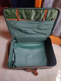 Valigia vintage di tessuto con rotelle dimensioni H57 L74 P22. Contattare solo se realmente interessati no perditempo. Non effettuo spedizioni, ritiro in loco.