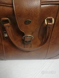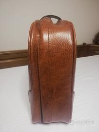 Bellissima valigia vintage anni 70, marrone, similpelle. Chiusura a cerniere e ulteriore chiusura a cinturino. Pratici manici per il trasporto. All'interno nastri per tenere in ordine gli indumenti e 2 taschini. Ideale anche come oggetto d'arredamento. Made in Italy. In condizioni molto buone. Ci sono imperfezioni estetiche dovute al trascorrere del tempo. Internamente in ottime condizioni.