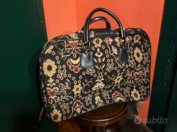 Vendo particolare e rara valigia modello Mary Poppins realizzazione Carpet Bags. La particolarità di questa valigia consiste nella realizzazione con vero tappeto a fiori esternamente, lavorazione pregiata e di ottime rifinitura. Al suo interno ha una fodera di color verde acqua Manici e rifiniture in pelle colore nero Fibia dorata e piedini dorati Dotata di due lampo per chiuderla una a destra e una a sinistra Eccellente condizioni di conservazione Oggetto raro