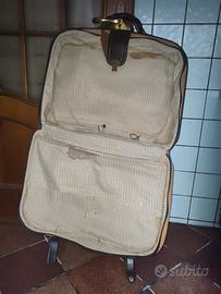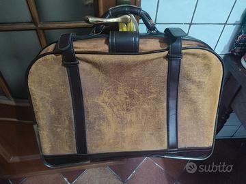 Valigia o borsa da viaggio vintage Pierre Cardin di camoscio e pelle usata ma in buono stato di conservazione. Sono presenti 2 macchie lavabili all'interno della valigia come si nota dalle foto.