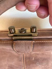 Valigia vintage artigianale in pelle. NUOVA Interno ampio rivestito in velluto Misure 40x50