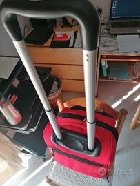 Zaino Trolley in tessuto con manico composto da due aste resistenti e regolabili in alluminio satinato.