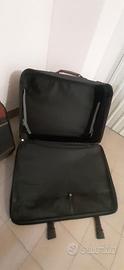 Due valigie una grande e l'altra un po più piccola con tasche sia esterne che interne e chiusura con zip e cinghie.