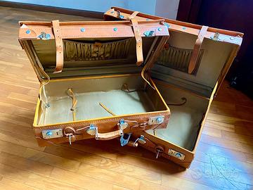 splendide valige inseribili una nell'altra, in cuoio pregiato, dimensioni 66x40x20, la piu grande e 60x34x20 la piccola. visibili a Milano